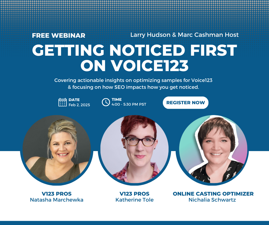 Whether you’re new to Voice123 or have been on the platform for years, this webinar is packed with insights you won’t want to miss.
